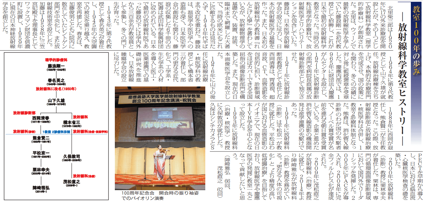 放射線科学教室の100年の歴史の紹介記事が慶應義塾医学部新聞に掲載されました(click)
