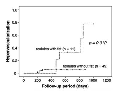 また,EOB-MRIの日常臨床への普及に伴い,肝細胞相でのみ認められるような乏血性の小結節が多数見受けられるようになり,結節内の脂肪成分が多血性HCCのリスクとなることを解明しました(図2)(Magn Reson Med Sci. 2013;12:281-287).