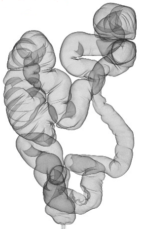 2000年以降,消化管の画像診断は新しい局面を迎えています.従来のバリウムX線造影,内視鏡に加え,3次元CTによって大腸を検査するCTコロノグラフィー(CT colonography, CTC:図1~3)の普及がすすんでいます.また、クローン病や潰瘍性大腸炎など小腸・大腸におきる炎症性腸疾患を対象とした、MRエンテログラフィー(MR enterography, MRE)(図4)も登場しています.
